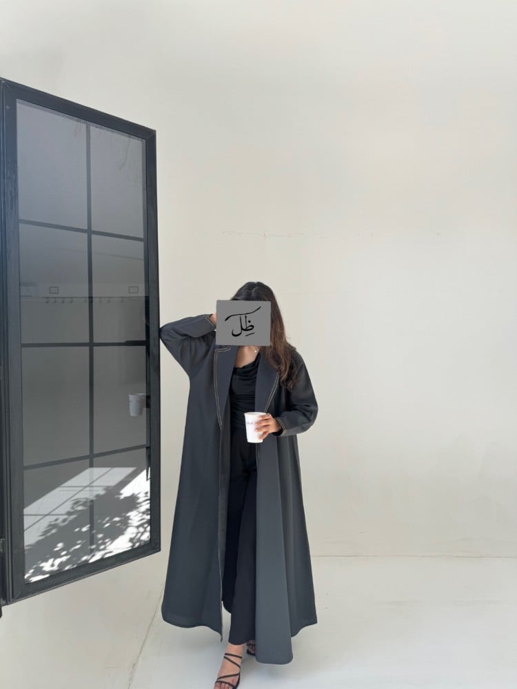 قماش العباية: كتان اسود ، زيتي ، كحلي .